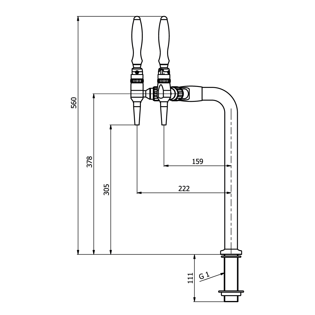 La colonna include rubinetti “stout” realizzati interamente in acciaio inox AISI 316