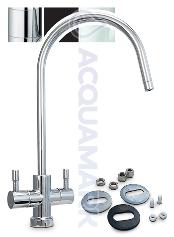 Il rubinetto di prelievo Acquamark 2002 a 2 vie è progettato come rubinetto aggiuntivo per acqua depurata, ideale per impianti di filtrazione e osmosi inversa.