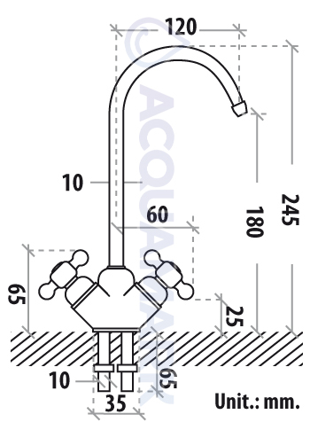 Il rubinetto di prelievo Acquamark 2008 a 2 vie è progettato come rubinetto aggiuntivo per acqua depurata, ideale per impianti di filtrazione e osmosi inversa.