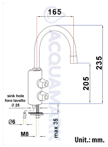Il rubinetto di prelievo Acquamark 2011 a 2 vie è progettato per l’erogazione dell’acqua depurata proveniente da impianti di filtrazione e osmosi inversa.