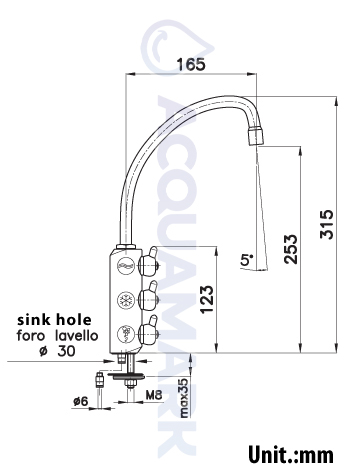 Il rubinetto di prelievo Acquamark 3031 a 3 vie è progettato per l’erogazione dell’acqua depurata proveniente da impianti di filtrazione e osmosi inversa.